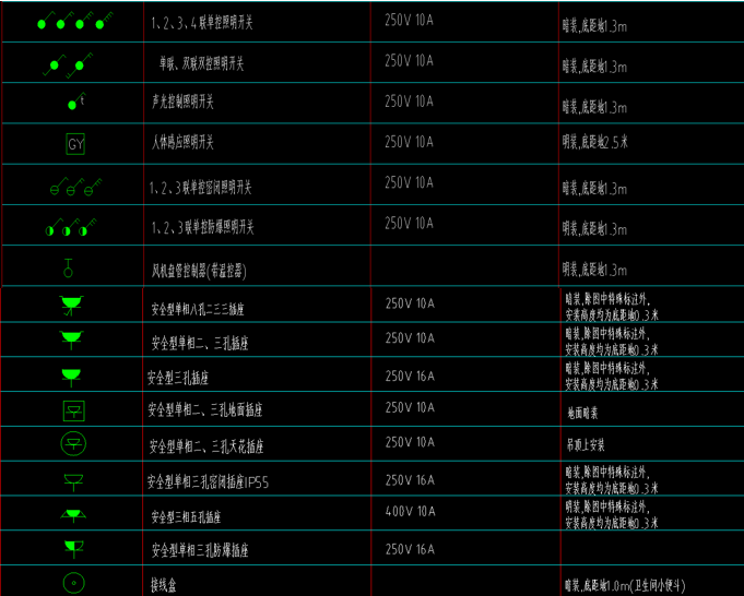 1.基础元件符号:开关、灯具、插座、配电箱速记