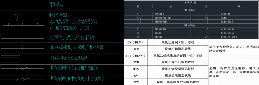 ·线缆型号:BV、BVR、RVV等线缆型号,区分硬线、软线、护套线,适用于不同场景,确保选型准确。