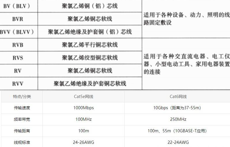 2.常用线缆型号速查:BV、YJV、CAT6差异与应用