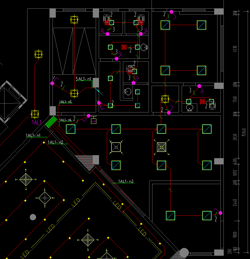 ·配电箱:配电箱编号如AL1、ALE等,指示功能分区,确保配电系统清晰有序。