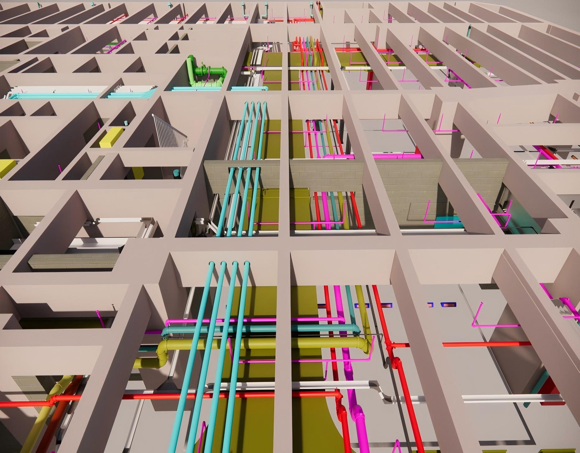 电子地图(BIM 模型):将二维图纸转化为三维数字模型,提前完成管线碰撞检测、最优路径规划,就像导航 APP 的离线地图,确保施工 “路线” 无偏差。