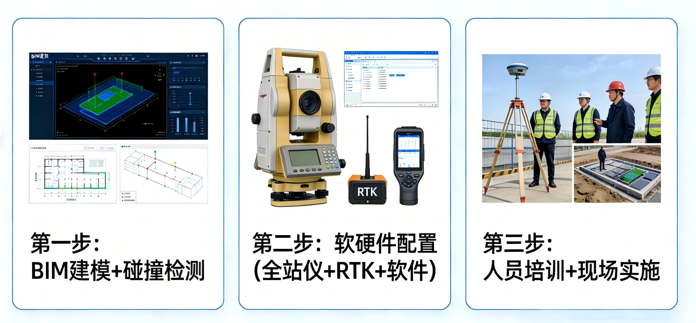 软件选型:Revit(建模)+ Trimble Access(放样)+ BIM 360(协同)