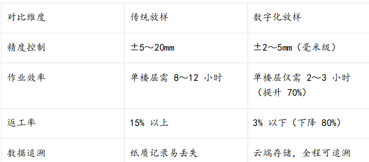 数据印证:黄河设计院智能放样装备在古贤水利枢纽应用中,水平误差<3cm,高程误差<5cm,较传统方法效率提升 3 倍;某 300 米超高层项目采用 BIM + 全站仪放样,每层施工提前 2 天,无任何返工记录。